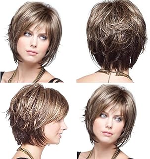 Perruque pour femme, courte, style jeune et décontracté, à la mode, de couleur blond foncé, avec raie GFW967-14