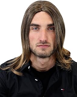 Longue perruque pour homme, style jeune et à la mode, avec raie au milieu et pointes décolorées, de couleur châtain GFW891-2T19