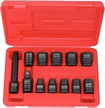 Jeu de douilles à impact 1/2' Meterk 20pcs Coffret de Douilles à Chocs 6 Pans 9-24mm douilles à choc 1/2', 3'', 5'', 10'' barres d'extension avec 3/8'' to 1/2'' Adaptateur de clé à douille inclus