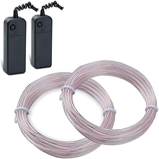 EL Wire Fil Neon Flexible Lumiere,Sunboia 2x5M Blanc LED Cable Guirlande Lumineuses Electroluminescent Tube Lumineux,Fete,Decoration Voiture,Cuisine Exterieure,Boites de Nuit,Baton Lumineux