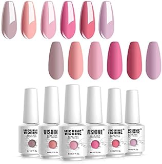 Vishine Vernis à Ongles Gel, Lot Pêche Rose UV LED Vernis Gel Semi Permanent Soak Off Manucure Nail Art Kit, 6 Couleurs X 8ml