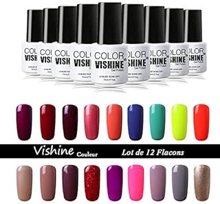 Vishine Sélectionner Lot de 12 Couleurs Vernis à Ongles Semi Permanent UV LED Gel Polish Soak Off Nail Art Kit Manucure 12pcs × 7ml