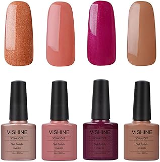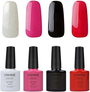 Vishine Vernis à ongles Semi-permanent Gel Soak Off UV LED Manucure Kit Nail Art Lot de 4 Couleurs C190