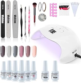 Vishine Kit de 40W UV LED Lampe Vernis Semi Permanent Lot 6 Vernis à ongles gel Soak Off Base Top Coat Brosse Strass Décor Nail Outils Nail Art Kit Manucure