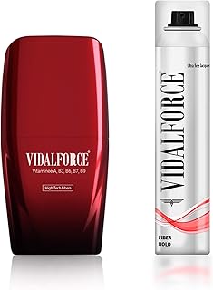 VidalForce, fibres capillaires végétales ⎯ Poudre densifiante volumatrice pour cheveux ⎯ Calvitie perte de cheveux & racines. Hair loss concealer ⎸ Châtain Moyen (40g + Fixant) ⎸