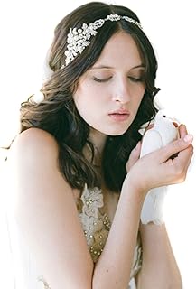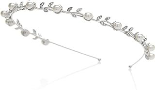 SWEETV Perle Bandeaux Cheveux Couronne Diadème Strass Feuille Fête Soirée Serre-tête Mariage Couvre-chef pour Femmes (Bande Unique Argent)