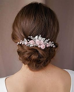 Simsly Mariée Fleur Peigne à cheveux Feuille Argent Tête de Mariée Perle Accessoires Cheveux pour Femmes et Filles