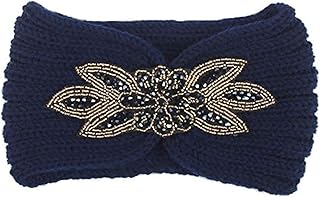 KINTRADE Bande à Cheveux en Paillettes pour Femmes Fleur Strass perlé Oreille Chaude Couvre-Chef Large Marine