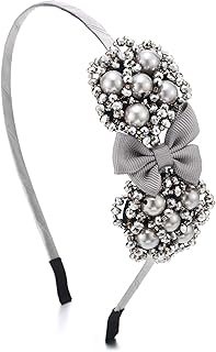 COOLSTEELANDBEYOND Grand Ruban Noeud Perle Strass Perle Fleur Papillon Cheveux Cerceau Bandeau Bande de Cheveux Couronne Fête Bal de Promo