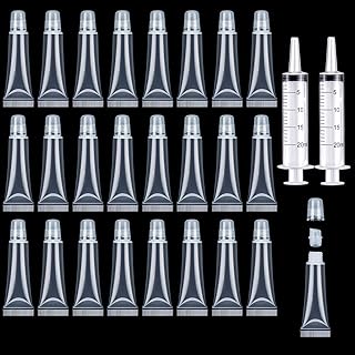 24 Pièces 8ml Tube Gloss Vide Lip Gloss Tube Flacon Gloss Contenant Gloss avec 2 Seringues en Plastique de 20 ml