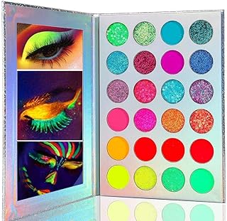 Kalolary Palette de fards à paupières Neon Luminous, palette de maquillage de fard à paupières hautement pigmenté 24 couleurs, Kit de maquillage pour fard à paupières UV Glow Black Matte and Shimmer