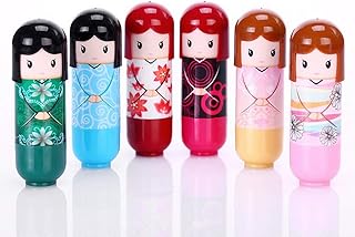 Mnsun 24 pièces Belle Bande dessinée Kimono poupée baume à lèvres Rouge à lèvres hydratant, baume à lèvres Matryoshka, incolore et Sec
