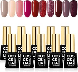 Vernis Gel Semi Permanent Saint-Acior Lot de 10pc Vernis à Ongle Gel Polish Soak Off Manucure Gel LED/UV Vernis Nail Art Ongle 8ml#002