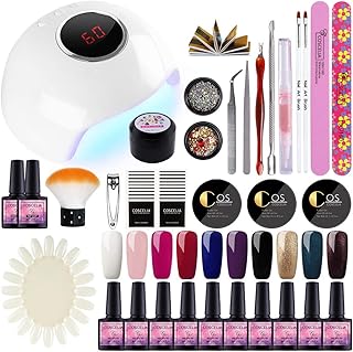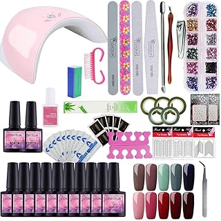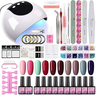 Product: Gel nail polish kit with uv light 2. Color: 10 Colors. Such as black, white, pink, red, green, brown, glitter blue, glitter golden, glitter purple, glitter pink. 3. Volume: 8 ml (0.28 OZ) each bottle. Product List: 1x 36W Lamp Led Nail Dryer 10x 8ml Gel Nail Polish 1x 8ml Top Coat 1x 8ml Primer 10x Nail Polish Remover Pads in Foil Packet Find helpful customer reviews and review ratings for Saint-Acior 36W UV/LED Lamp + 4pc Semi-Permanent Nail Polish 1 Pot Poly Extension Construction Gel Nail Cleanser Plus Base Top Coat Stickers Decor Nail Manicure Kit #H5D at Amazon.com. Read honest and unbiased product reviews from our users.