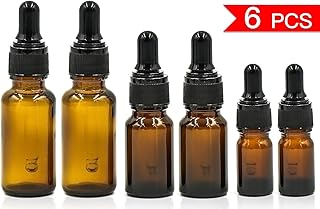 Wandefol Lot de 6 Flacon Compte-gouttes en Verre, 5ml 10ml 15ml Bouteille Vide Voyage Ambre Verre pour Huile Essentielle, Aromathérapie, Pharmacie, Parfum