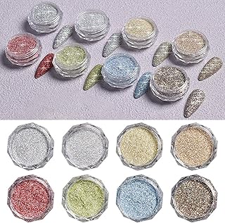 MELLIEX 18 Pièces Poudre Paillettes pour Ongles, Paillettes d'Art d'Ongle Paillettes Holographiques, Paillettes Cosmétiques pour Strass Nail Art Décorations avec Pinceaux