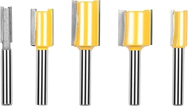 LAITER 5 Pcs Fraises Droites à Bois Fraises à Copier avec 1/4″ Tige Outil Rotatif Pour Menuiserie Routeur Bits à Coupe pour Travail du Bois Fraisage en Carbure Cémenté pour Finition Affleurant