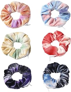 6 Pièces Chouchous Cheveux avec Poche à Fermeture éclair, Velours Élastiques Cheveux Cravates Bandes de Cheveux Doux Porte-queue de Cheval Bandeaux Mini Sac de rangement pour Femmes Filles (Couleur B)