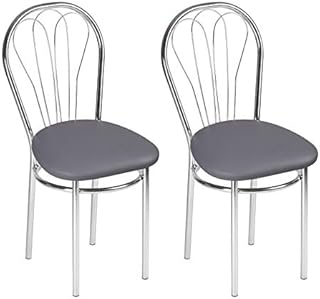 BSD Design Moderne Chaise de Salle à Manger en Cuir Faux, Lot de 2 Chaises de Salle à Manger avec Pieds en Métal - Venus Trapèze - Couleur: Gris-b - Lot de 2