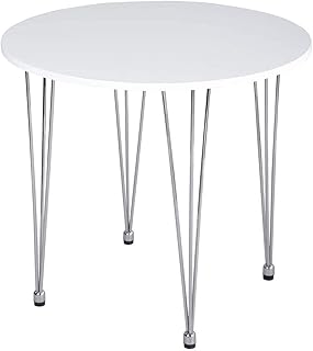 MEUBLE COSY Table de Salle à Manger Table Basse Ronde Simple et Moderne avec Pieds en métal chromé, Blanc Table salle à manger, /80X80X73cm