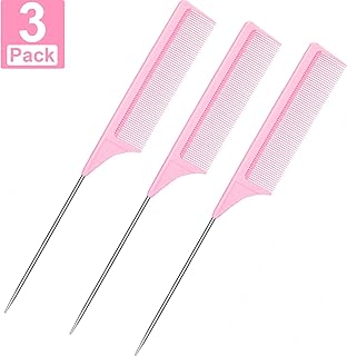 3 Paquets Peigne de Queue de Rat Peignes de Queue de Rat Résistants à la Chaleur en Fibre de Carbone avec Broche en Acier Inoxydable (Rose)