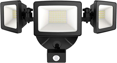 Onforu 50W 5000LM Projecteur LED Exterieur Detecteur de Movement, IP65 Etanche Spot LED Extérieur Lampe 3 Tête, 5000K Blanc Froid Éclairage de Sécurité Exterieur PIR pour Jardin, Cour, Entrée, Terrace