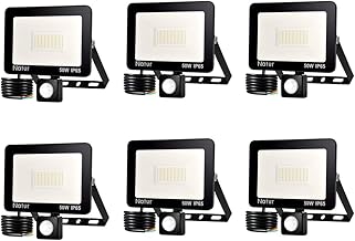 6packs 50W LED Projecteur Détecteur de Mouvements, Blanc chaud(3000K) Imperméable IP66, Projecteur LED exterieur de sécurité idéal pour éclairage public, garage, couloir, jardin
