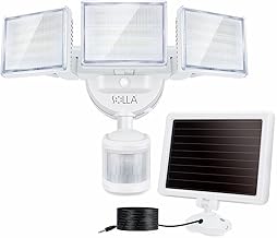 Lampe Solaire De Sécurité à Détecteur De Mouvement, Spot Mural Extérieur Puissant Avce 3 Têtes, 2000 Lumen,Projecteur LED d'Angle Réglable, Utile pour Coin, Avant-toit, Garage, Portail, Jardin