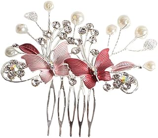 Minkissy Peigne à cheveux de mariage, peigne à cheveux papillon avec perles et strass pour femme, peigne vintage (rose)