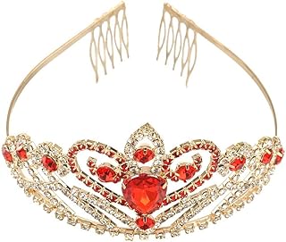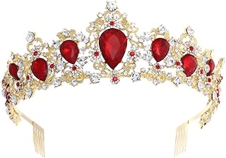 Minkissy Couronne de strass style baroque vintage pour mariage, bal de fin d'année (rouge)