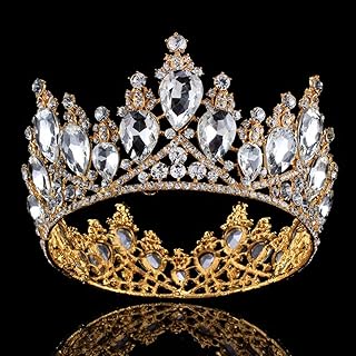 BLINGINBOX Couronne de reine baroque avec strass Couronnes de princesse Couronnes de mariée pour femmes filles Mariage bal d'anniversaire (25 x 6 cm, doré)