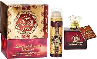 Coffret Parfum SHAMS AL EMARAT KHUSUSI EDP 100ML + Déodorant 50ML Attar Femme Oud Fille Musc Arabe NOTES: Florales Ructées Épices Vanille Bois de Santal et Musc
