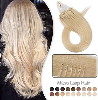 Extension Cheveux Naturel a Froid Micro Loop Micro Anneaux 100 Mèches 50g - #60 BLOND PLATINE - Rajout Extensions de Cheveux Humains - 40 cm