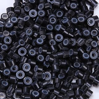 Faletony 500 Pièces Micro Anneaux Doublés de Silicone pour Extensions de Cheveux et de Plume(Noir)