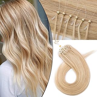 Easyouth Easy Loop Cheveux Extension a Froid Anneaux Extensions Cheveux Naturels Lisse 1g Micro Rings Hair Bleach Blond Couleur 14Pouces 50g